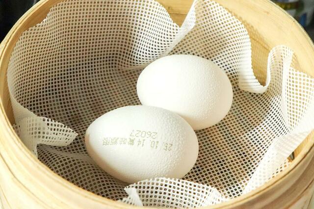 7分程度蒸せばとろとろの半熟に、10分ほど蒸せば黄身がしっとりに仕上がります。