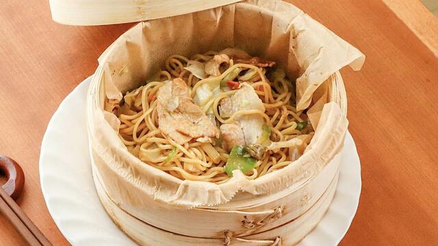 油を使っていないため、炒めた焼きそばよりもヘルシーですし、蒸しているから麺がもちもちで食べ応えも抜群。