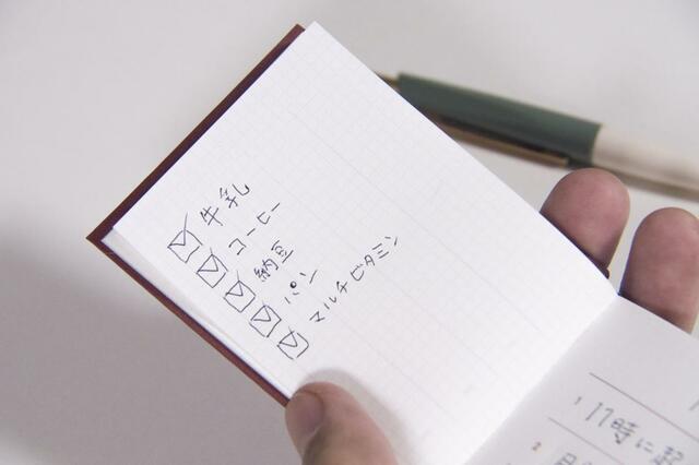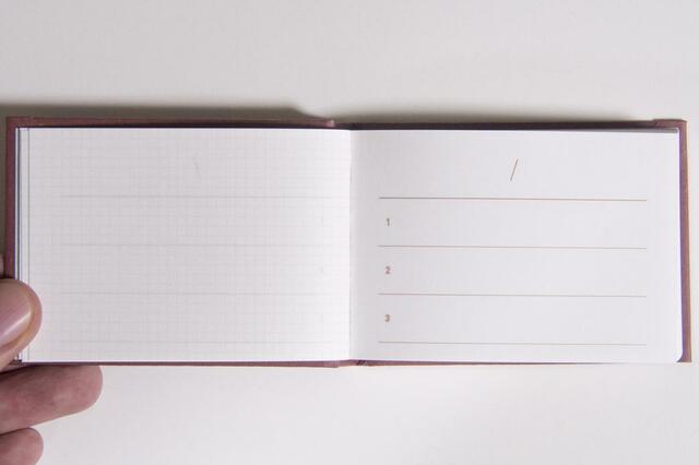 開いてみると左には方眼ページ、右には日付と3項目分の1行メモ。