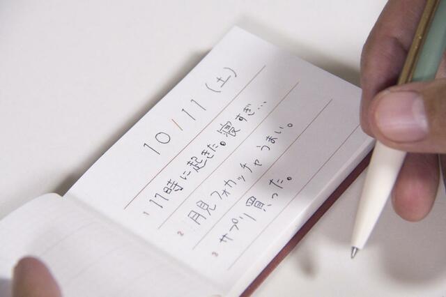 「今日は日記に残すようなことないなぁ」なんて日でも、起床時間や食べたもの、天気など、とにかく何でもいいから書いてみると簡単に1日分が埋まるのでかなり気持ちがラク。