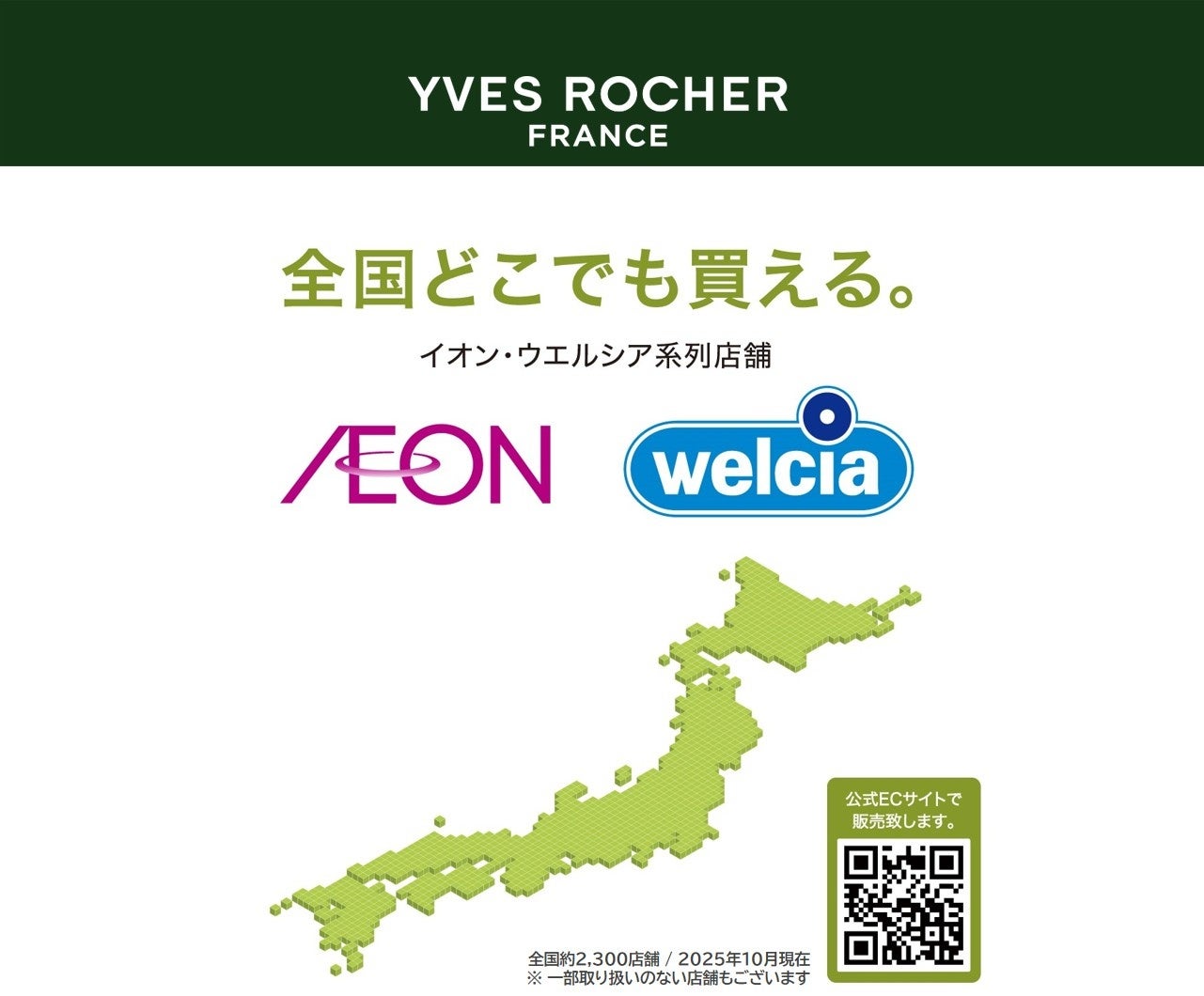 イオン・ウエルシア系列店舗(全国約2,300店舗/2025年10月現在)及び公式オンラインストア(www.yvesrocher.jp)にて展開※。