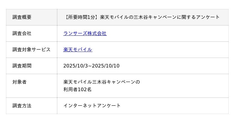 楽天モバイルの三木谷キャンペーンに関するアンケート(三木谷キャンペーンを利用したことがある・利用を検討している男女102名に調査)