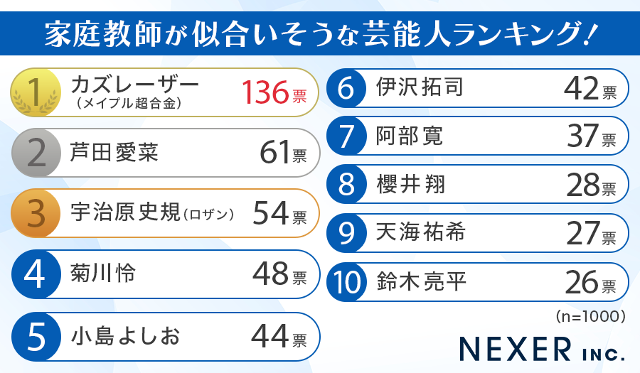 株式会社NEXER・家庭教師が似合いそうな芸能人に関する調査