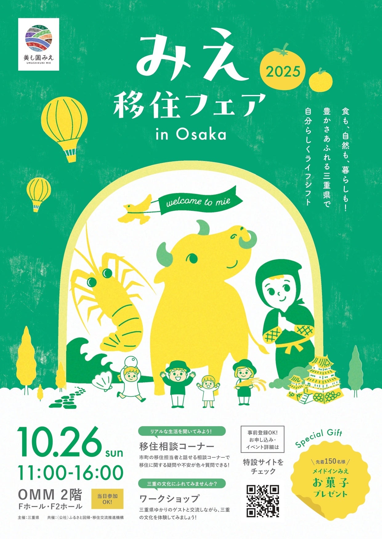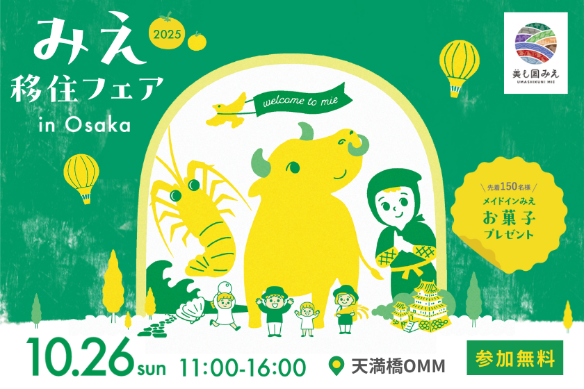 菰野町は、2025年10月26日(日)に大阪にて開催される「みえ移住フェア2025」に参加いたします。