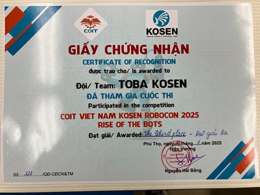 鳥羽商船高専は、令和7年2月8日、COITと学術交流協定(MOU)を締結し、教育や研究における継続的な交流を進めていることから、今回、ベトナムロボコンへの出場が実現しました。今後も、学生交流や国際協働PBL(Project Based Learning)を積極的に推進し、技術を通じた国際的な連携をさらに深めてまいります。