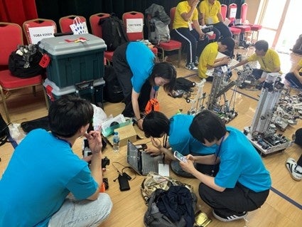 今回の競技内容は、2台のロボットを製作し、箱やボールを正確に運ぶ技術を競うというものでした。鳥羽商船高専チームは製作したロボットを現地に持ち込み大会に臨みましたが、プログラミングの不具合といったトラブルも発生しました。しかし、学生たちは協力して調整を重ね、競技で技術を披露することができ、その結果、見事3位に入賞しました。