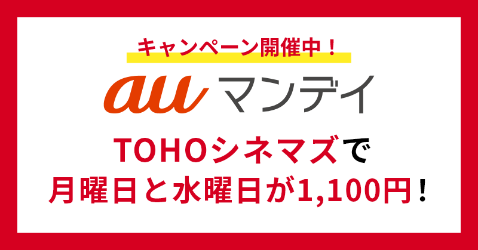 対象の作品が土日平日いつでも1,100円でご鑑賞いただけます。- 対象劇場:全国のTOHOシネマズ / ローソン・ユナイテッドシネマ グループ / コロナシネマワールド / OSシネマズ /キノシネマ