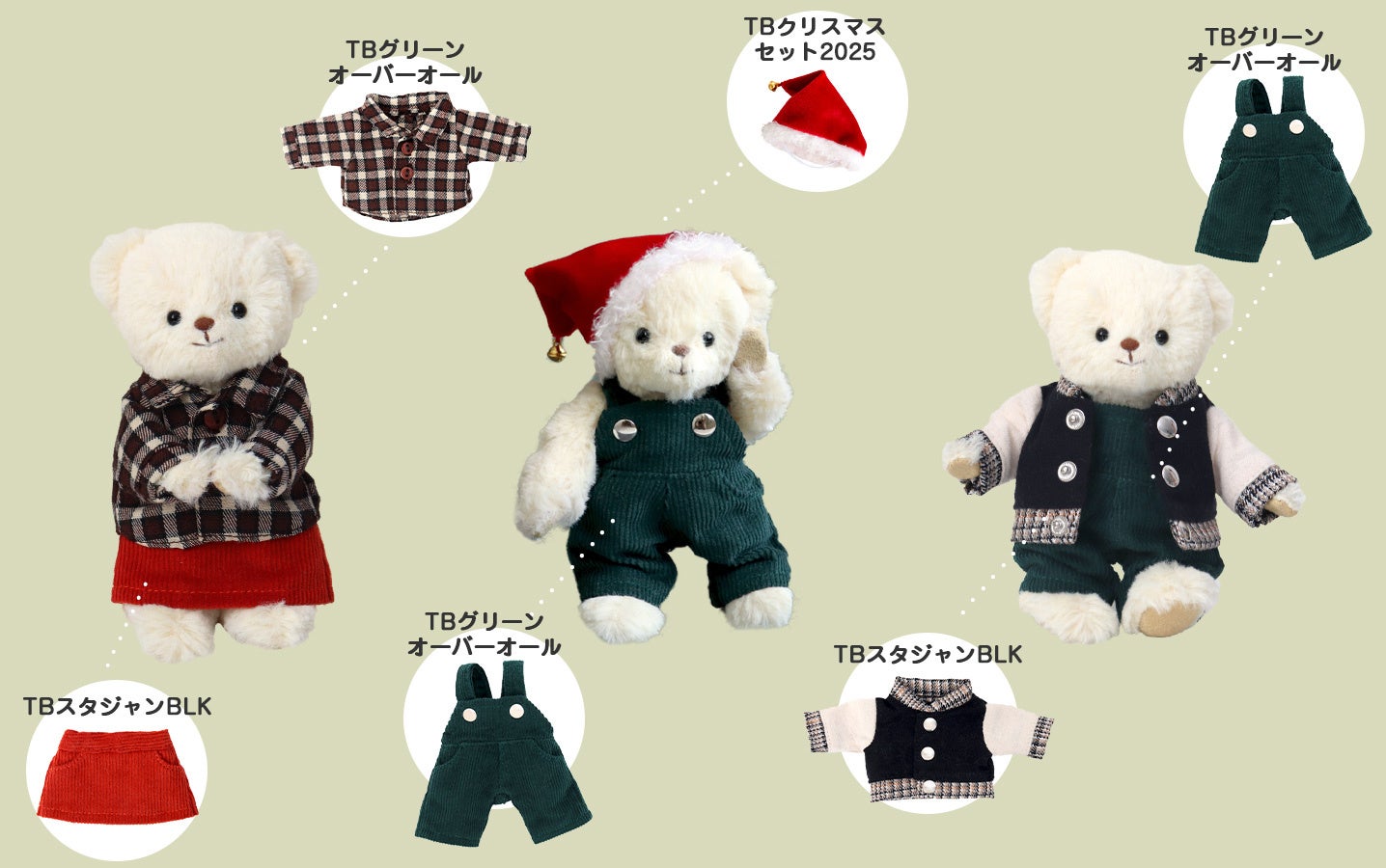 さらに、ホリデーシーズンにぴったりな「TBクリスマスセット2025」は、赤いセーターとサンタ帽でクリスマス気分を高めてくれる特別仕様。