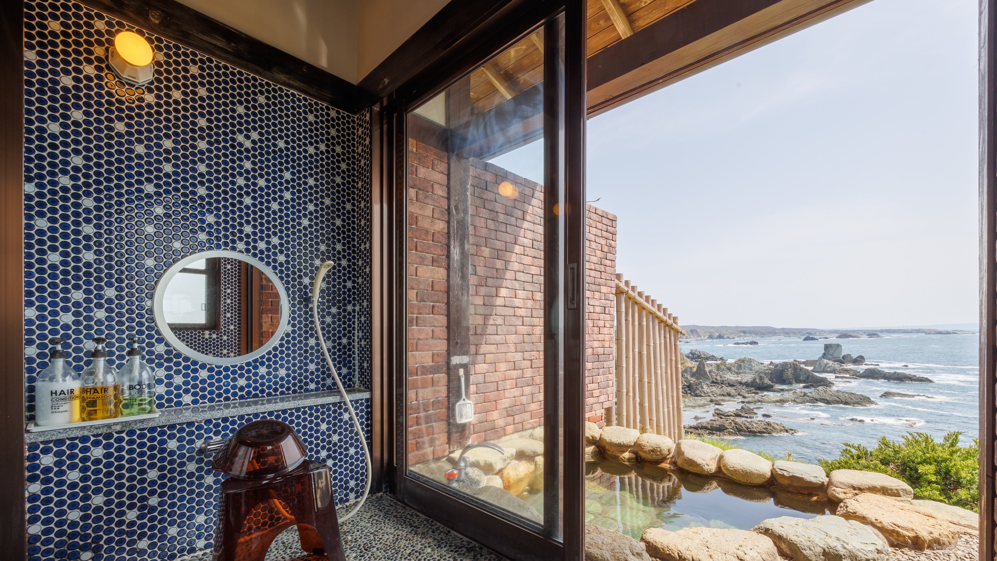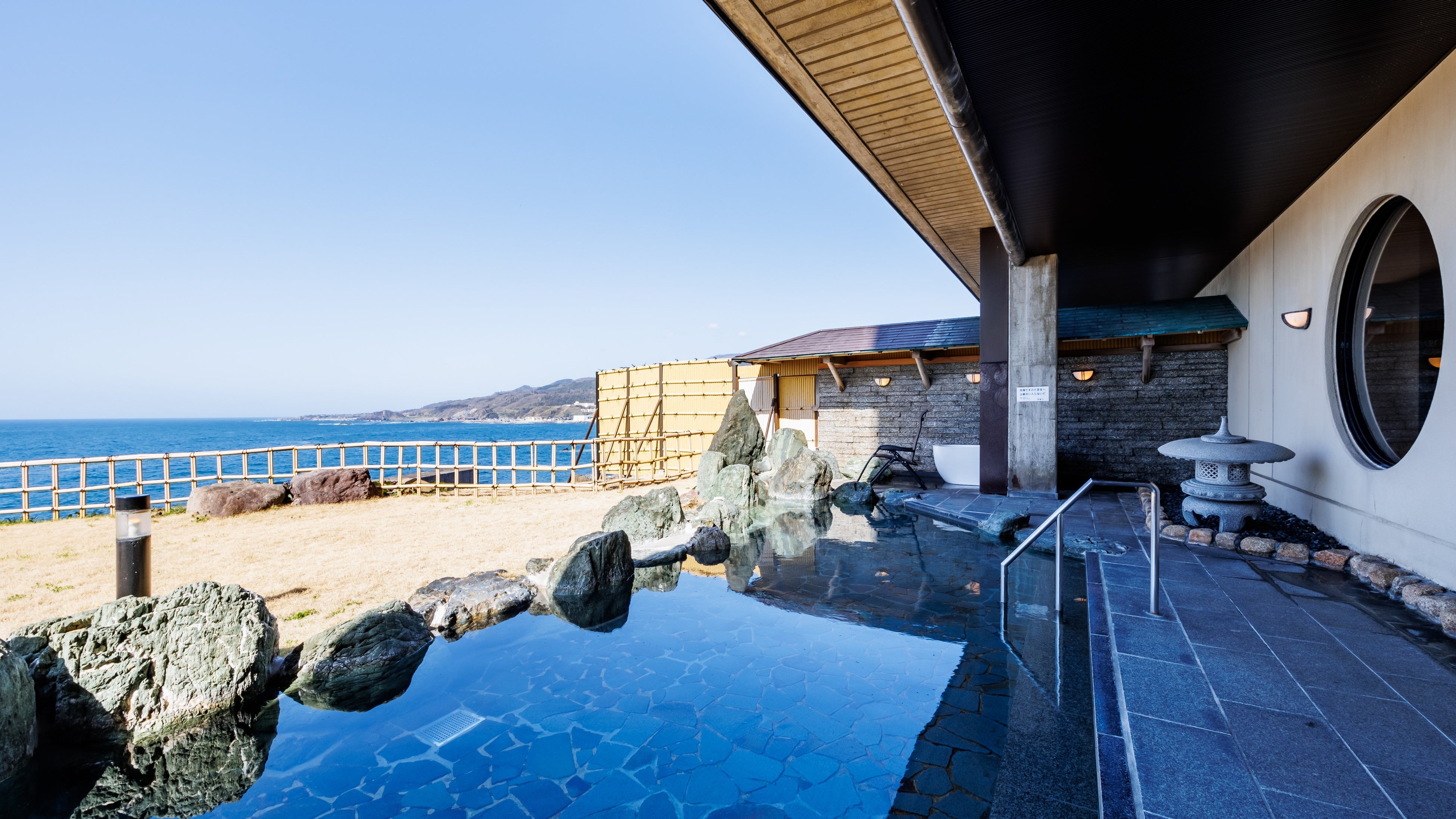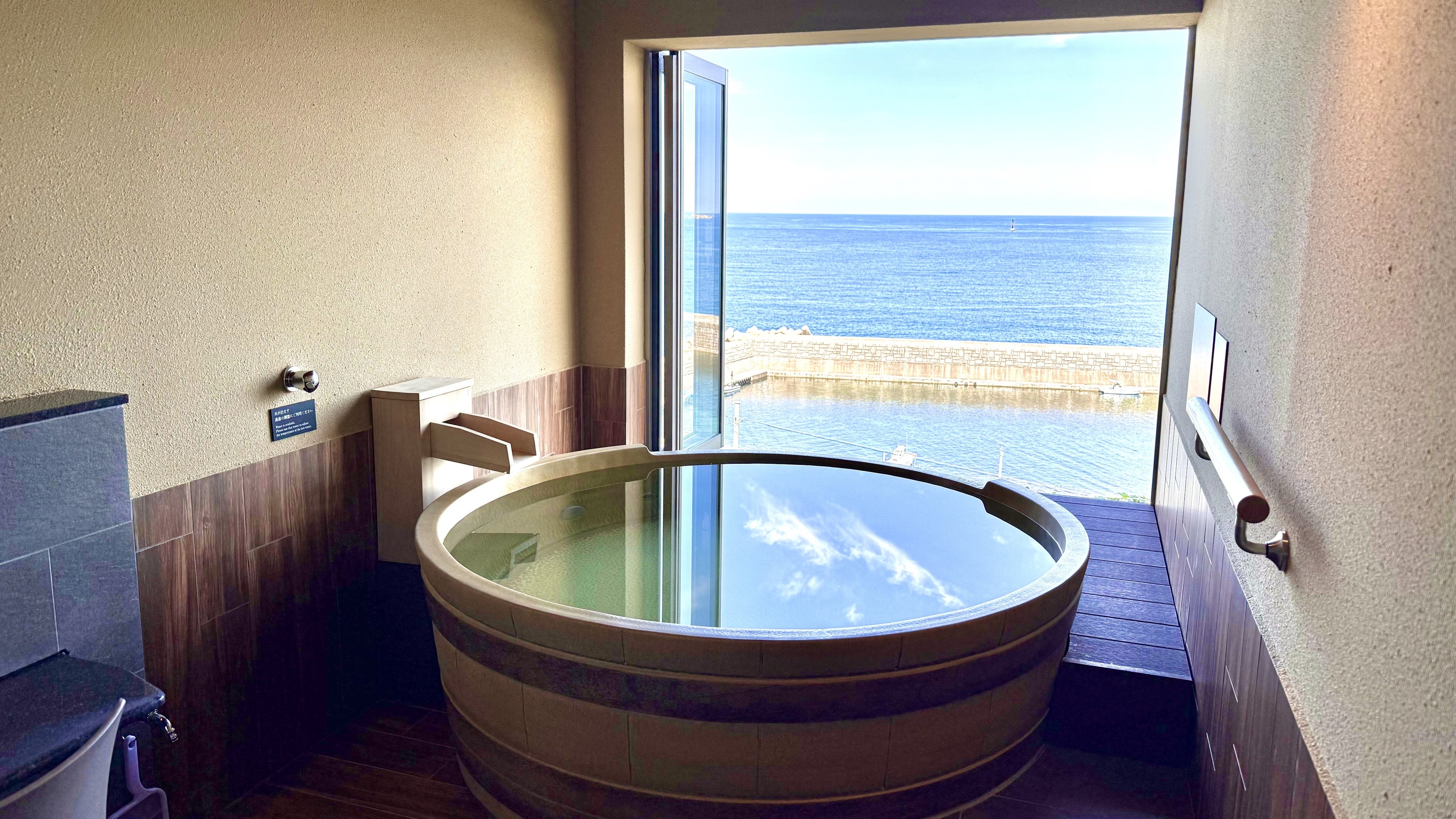 波音を聞きながら、客室の温泉でゆったりと至福のひとときをお過ごしいただけます。
