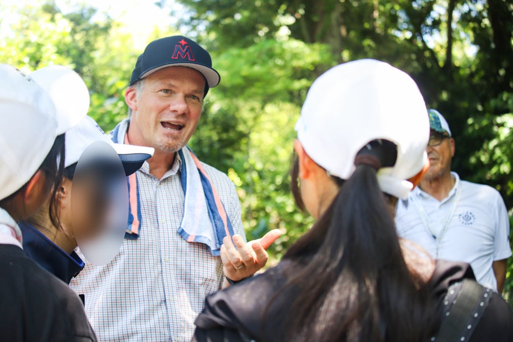 (左2番目から)都築 明寿香 理事長、半田 健 トップガーデナー、デジレロイ バルテレミ 講師