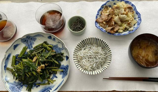 空芯菜炒め、しらすごはん、焼きそば、ミョウガの味噌汁を作ったが、食欲なし。ベッドへと戻り、またもや熟睡。