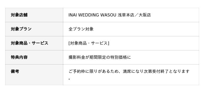 INAI WEDDING WASOU浅草店・大阪店で実施中の10月限定キャンペーンが、