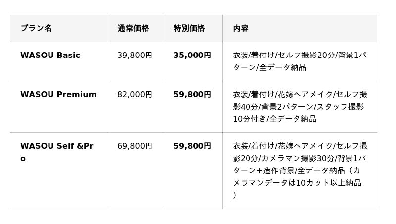 大阪店の特徴大阪は広々としたスタジオに2面の撮影エリアがあり、アーティスティックな撮影をしたい方には、WASOU Art.Bプランがおすすめ。