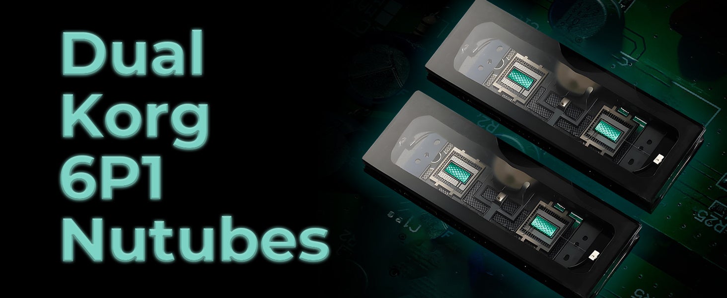 D17に搭載された2本のNutube 6P1真空管のアノードには、24V高電圧電源設計を採用することで、増幅回路の優れた線形特性を叶え、サウンドに真空管特有のまろやかな風味と温かみのある質感を付与しながらも、ダイナミックな質感を実現しています。