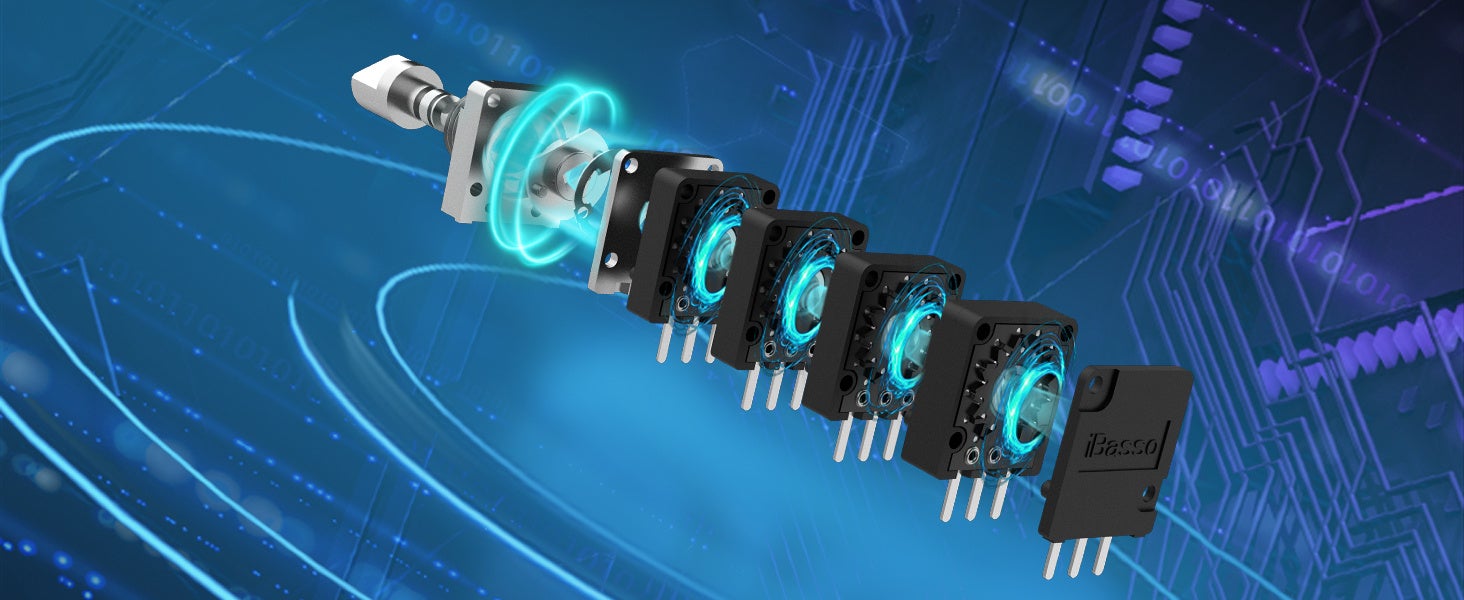 アナログボリュームにはiBasso自社開発24段4ステップアッテネーターを使用し、従来のステップアッテネーターの10分の1のサイズで開発されたこのアッテネーターは、ボリューム制御による音質の悪影響を排除し、チャンネル間アンバランスは±0.1dB以下と、リスニング体験にも優れたアナログボリュームです。