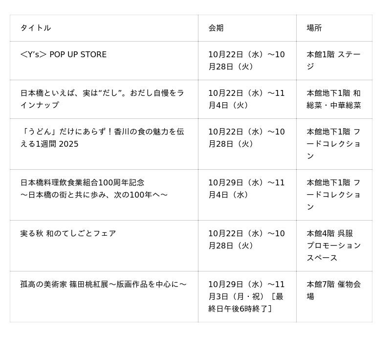 □日本橋三越本店 本館7階 催物会場 特設会場