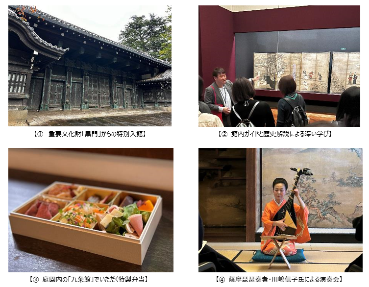 紅葉の美しい上野公園を舞台に、重要文化財「黒門」からの特別入館、博物館職員による館内ガイドと歴史解説、庭園内の歴史ある日本家屋「九条館」でのホテル特製弁当のランチと薩摩琵琶奏者の川嶋信子氏による演奏会などを通じて、文化・芸術・味覚・音楽が織りなす通常では味わえない秋限定のプレミアムなひとときをぜひご堪能ください。