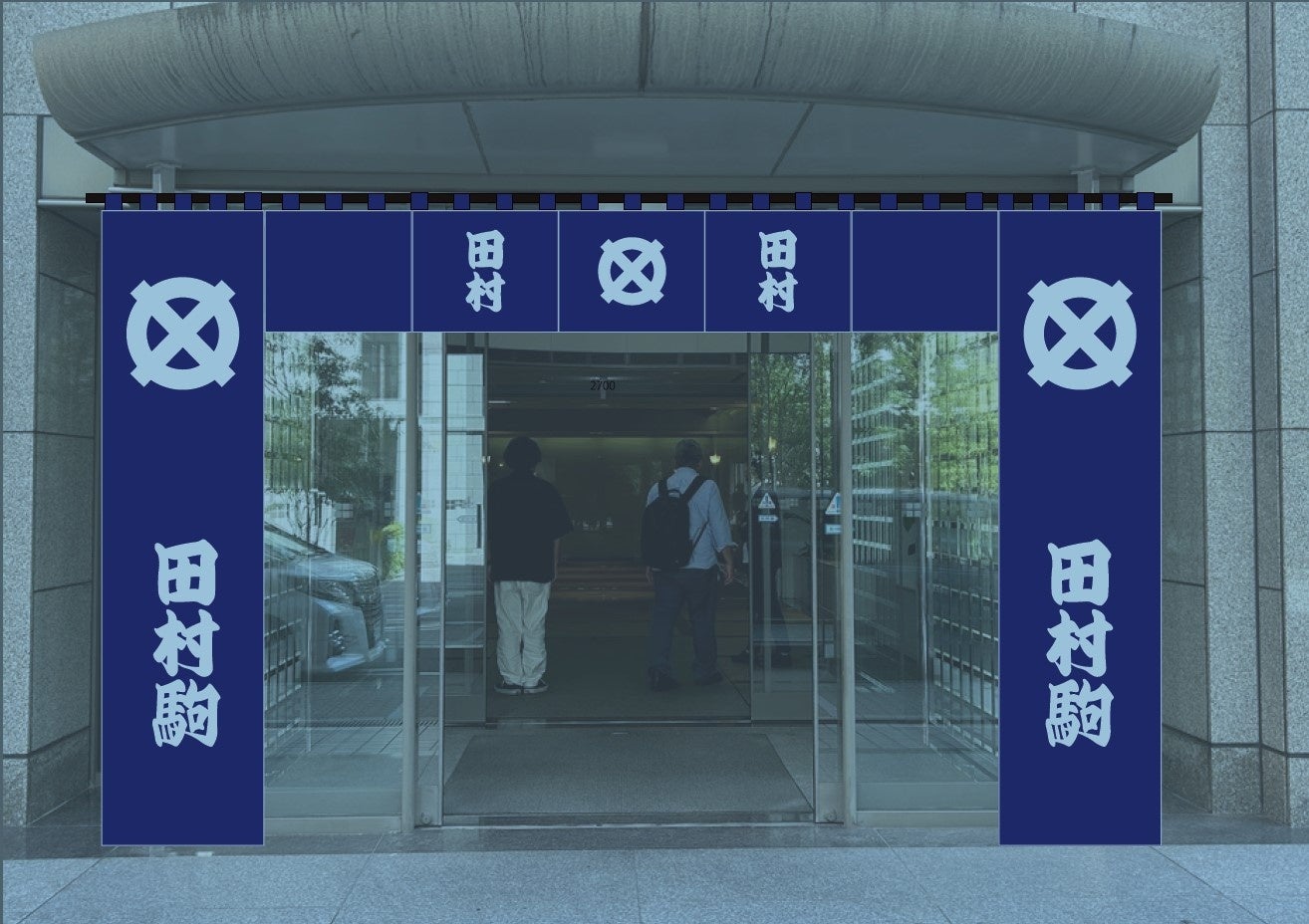 創業初期をイメージした暖簾を正面玄関に設置し、皆様をお出迎えいたします。