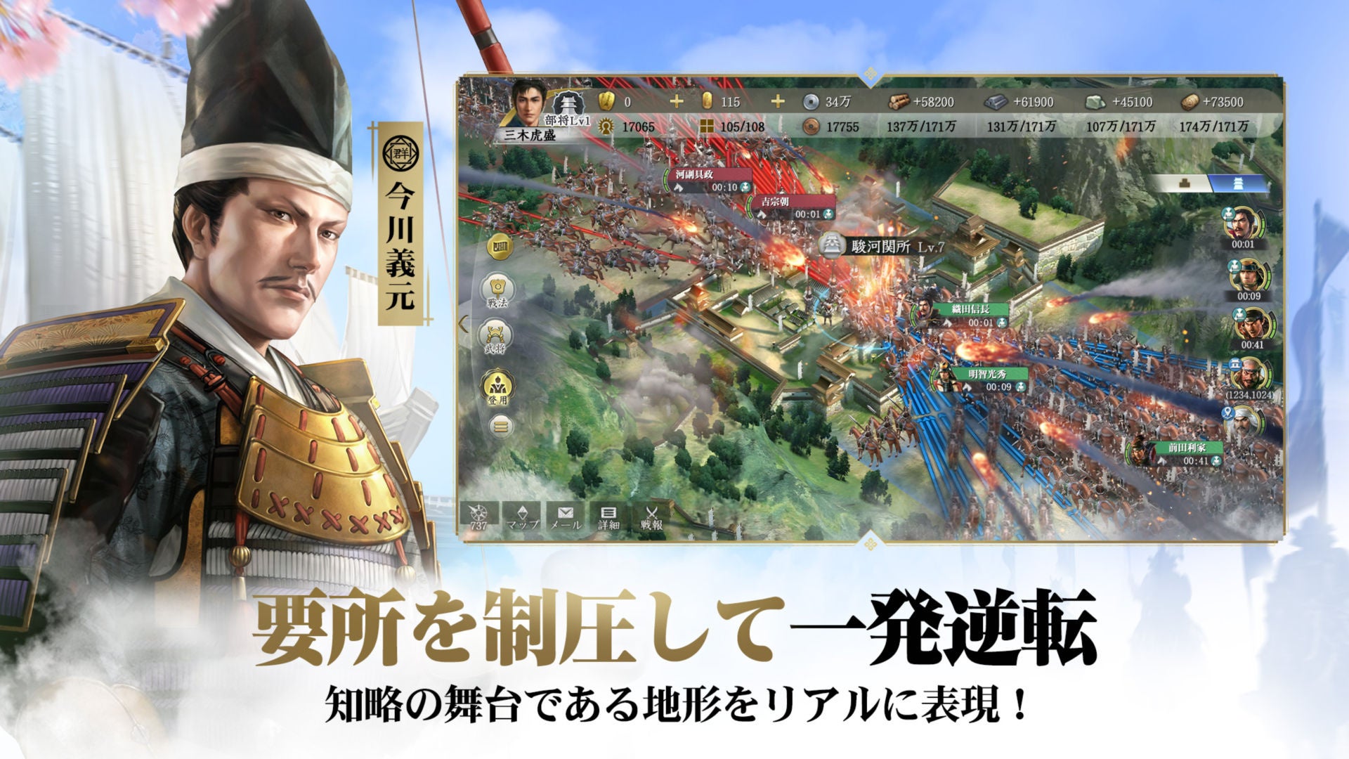 『信長の野望 真戦』では、「城の建設や争奪」、「知略を尽くした共闘体験」、「無数のプレイヤーがシーズンごとに新しい舞台で天下統一を遂げること」などが可能になっています。