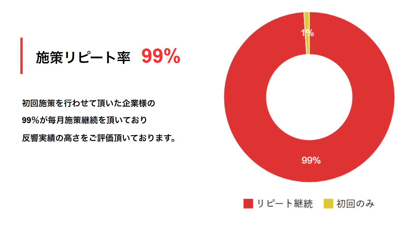 反響の高さをご評価頂きほとんどの企業様よりリピート継続を頂いております。