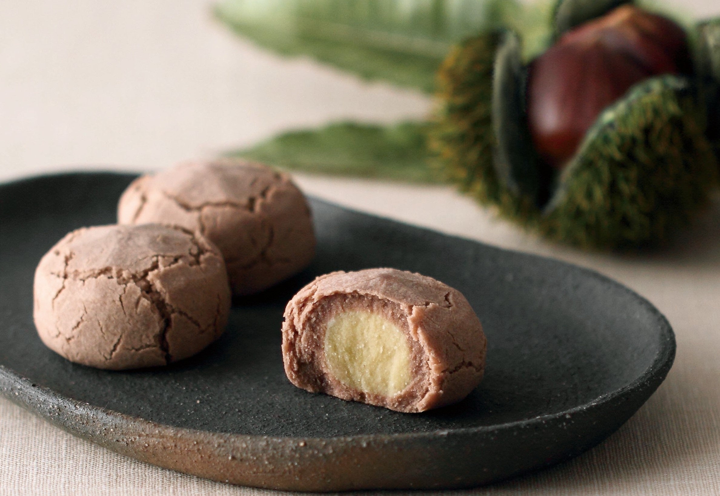 さつまいも餡を包んだ生地に桂皮末をまぶして焼き上げ、胡麻をあしらいました。徳島県産「なると金時」の甘さと食感を活かした一品。