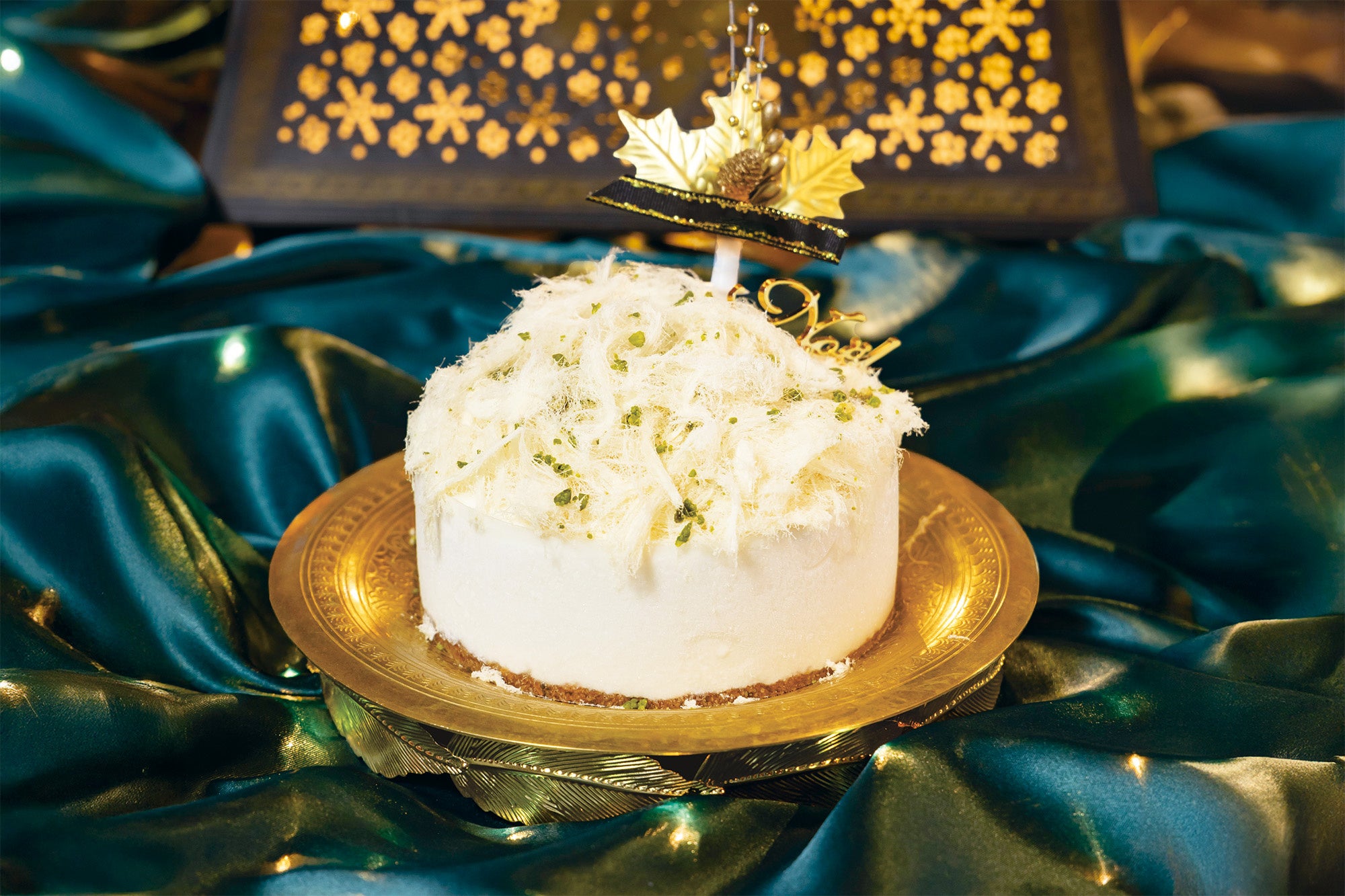 ‘白’を意味するレバノンで生まれた、真っ白なアイスケーキホワイトアーモンドと蜂蜜でつくる真っ白なジェラートで、濃厚なピスタチオペーストを包んだアイスケーキに、絹糸のような”ガザル・エルバネ”をのせた姿は繊細で優雅です。