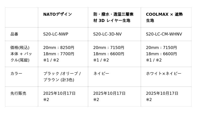 ※3:Knot THE STRAPおよび、Knot 公式WEBサイト、ならびに全国のギャラリーショップ各店での販売はNATOモデルは11月頃を予定しております。3Dレイヤー生地、及びCOOLMAXモデルは2026年春を予定しております (店舗一覧はこちら)