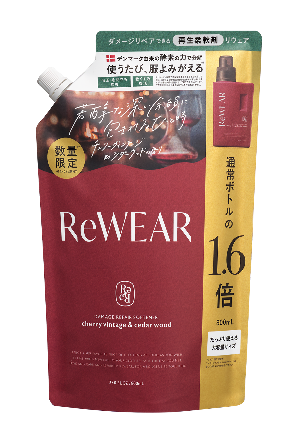 株式会社I-ne (本社:大阪市中央区) が展開する再生ファブリックケアブランド「ReWEAR (リウェア)」 は「再生柔軟剤 チェリーヴィンテージ&シダーウッド」を2025年10月30日(木)より公式オンラインストア、各ECモールにて、12月1日(月)より全国のドラッグストア、総合スーパー(一部企業、店舗除く)にて数量限定で発売します。