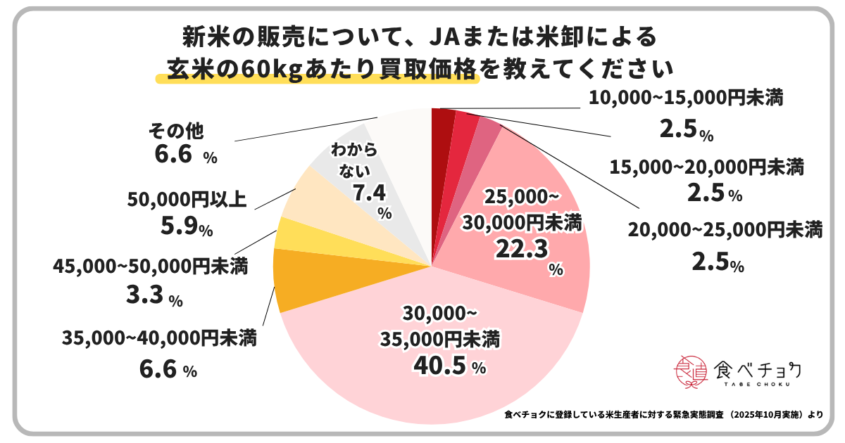 2025年5月時点での調査では、「相対取引価格22,700円(2024年9月の価格)」に対して半数以上が「安い」と回答していたことから、今回の価格の上昇はコメ農家にとっての適正価格でのコメの買取に近づいていると考えられます。