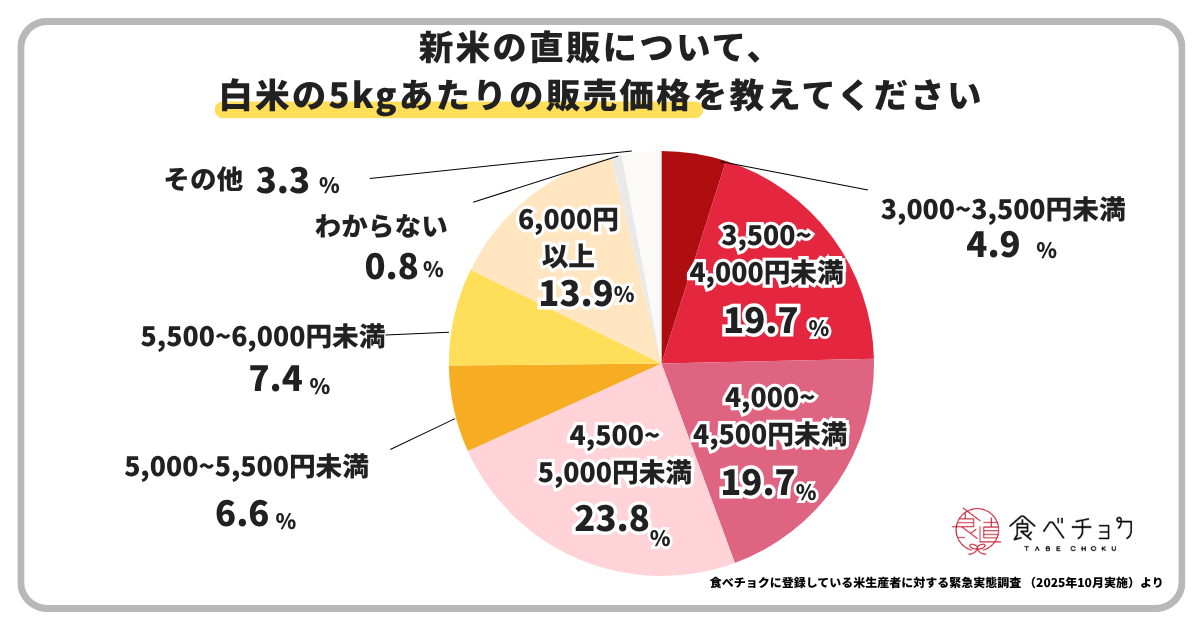 また、2025年7月~9月の間に食べチョクに新規登録申請を行ったコメ農家の軒数は昨年同時期と比較して3.7倍に増加しています。直販での販売では自身で価格を決めることができ、市場よりも粗利が多く手元に残ることから、このタイミングで直販に挑戦したいと考えるコメ農家の数が増加していることがわかりました。