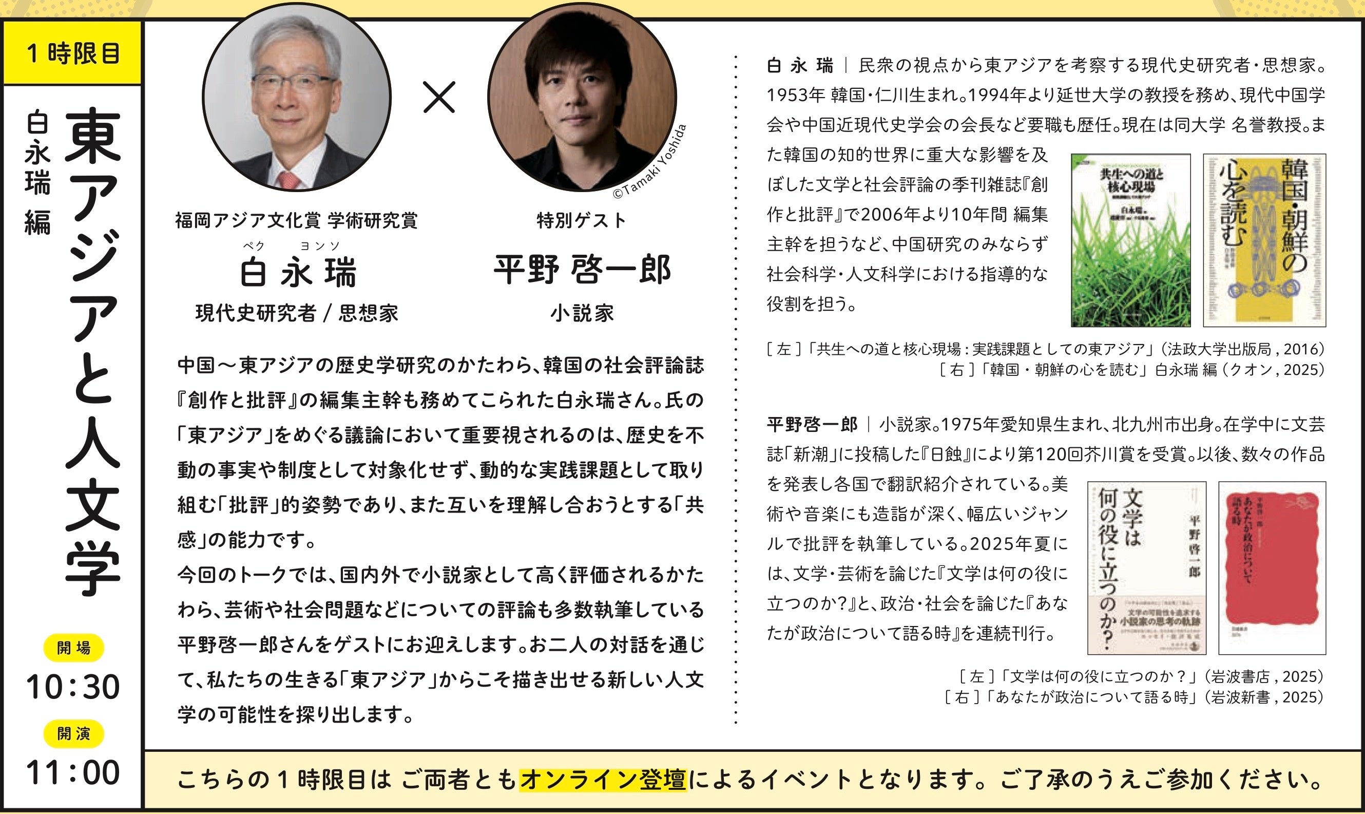 11:00~【1時限目】「東アジアと人文学」白永瑞 × 平野啓一郎