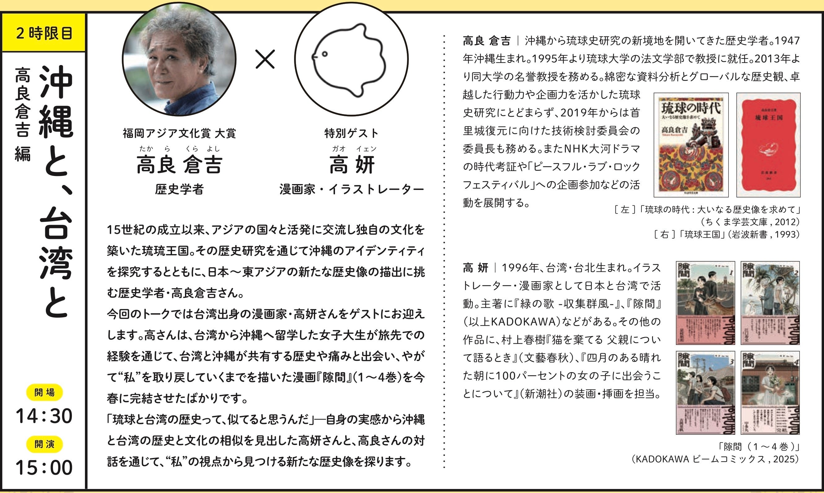 15:00~【2時限目】「沖縄と、台湾と」高良倉吉 × 高妍