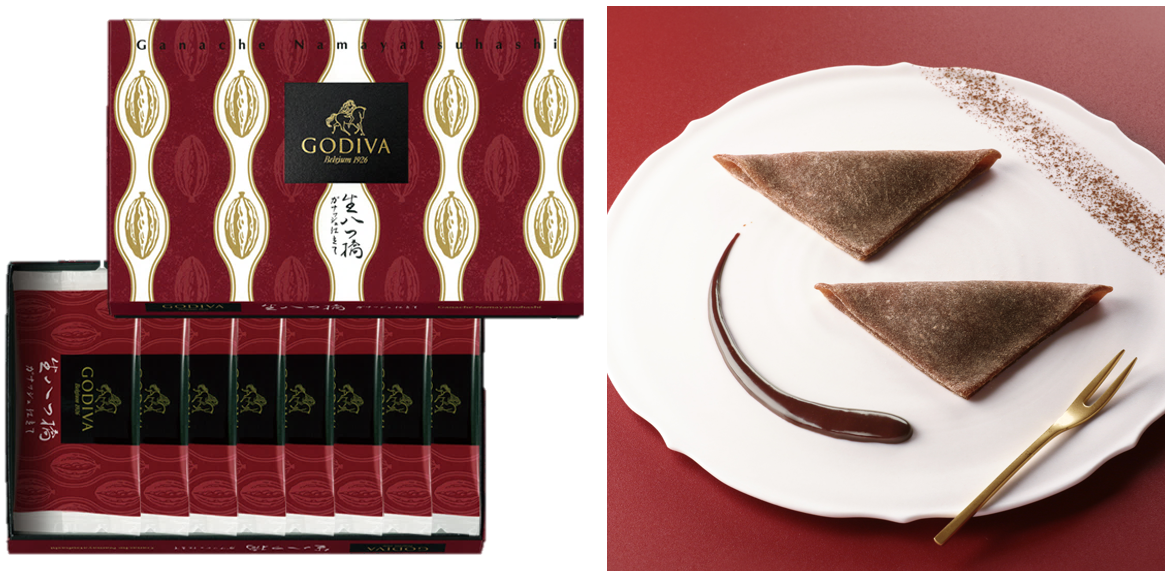 口溶けなめらかなガナッシュ仕立てのチョコレートを、ココア風味の生八つ橋で包んだ「生八つ橋 ガナッシュ仕立て」をはじめ、「八ッ橋ショコラ」や「クリスピーショコラサンド」を販売。