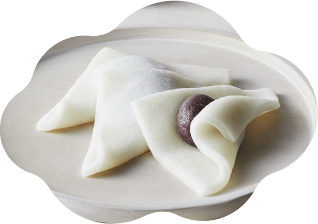 北海道十勝産小豆と国産バターを使いなめらかに炊き上げたこしあんバターを、きめ細やかなもち粉にメレンゲを合わせたふわふわ食感の生地で包みました。