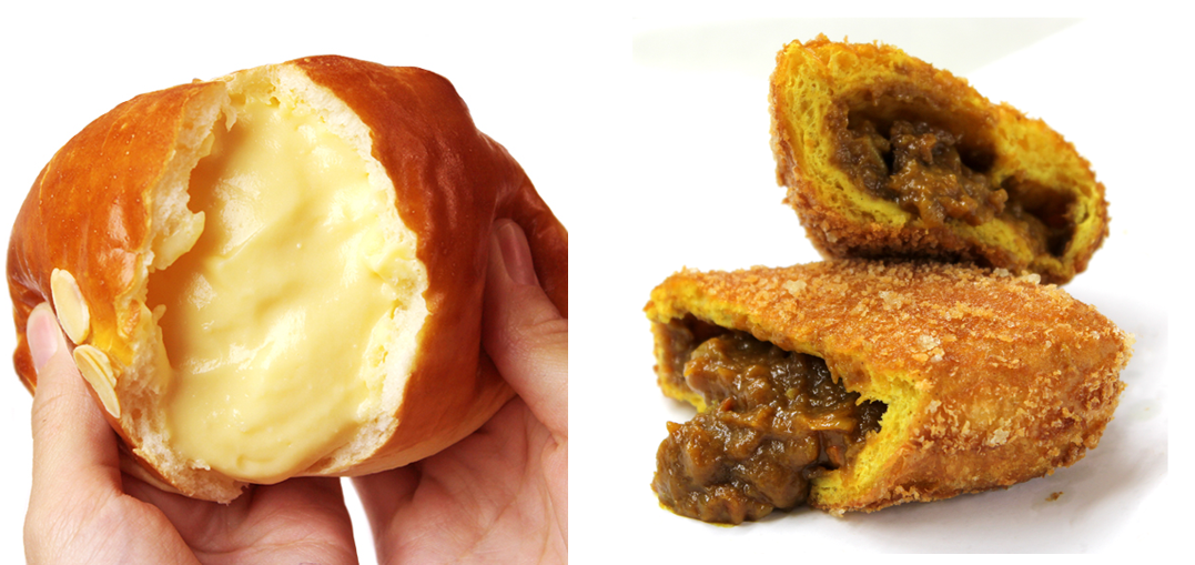 左「とろけるクリームパン」、右「匠のビーフカレーパン」※写真等はイメージです。取扱商品は変更になる場合がございます。