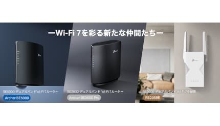 ティーピーリンクジャパン(TP-Link)は10月30日に、Wi-Fi 7(IEEE 802.11be)に対応するデュアルバンド無線LANルーター「Archer BE5000」「Archer BE3600 Pro」、デュアルバンド無線LAN中継器「RE235BE」の国内向け販売を開始する。