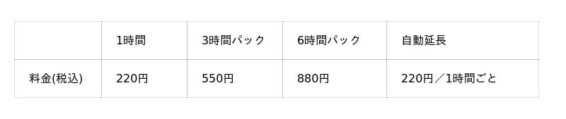 ※利用開始時に利用プランを選択できます。利用時間を超えると1時間単位で自動延長となります。