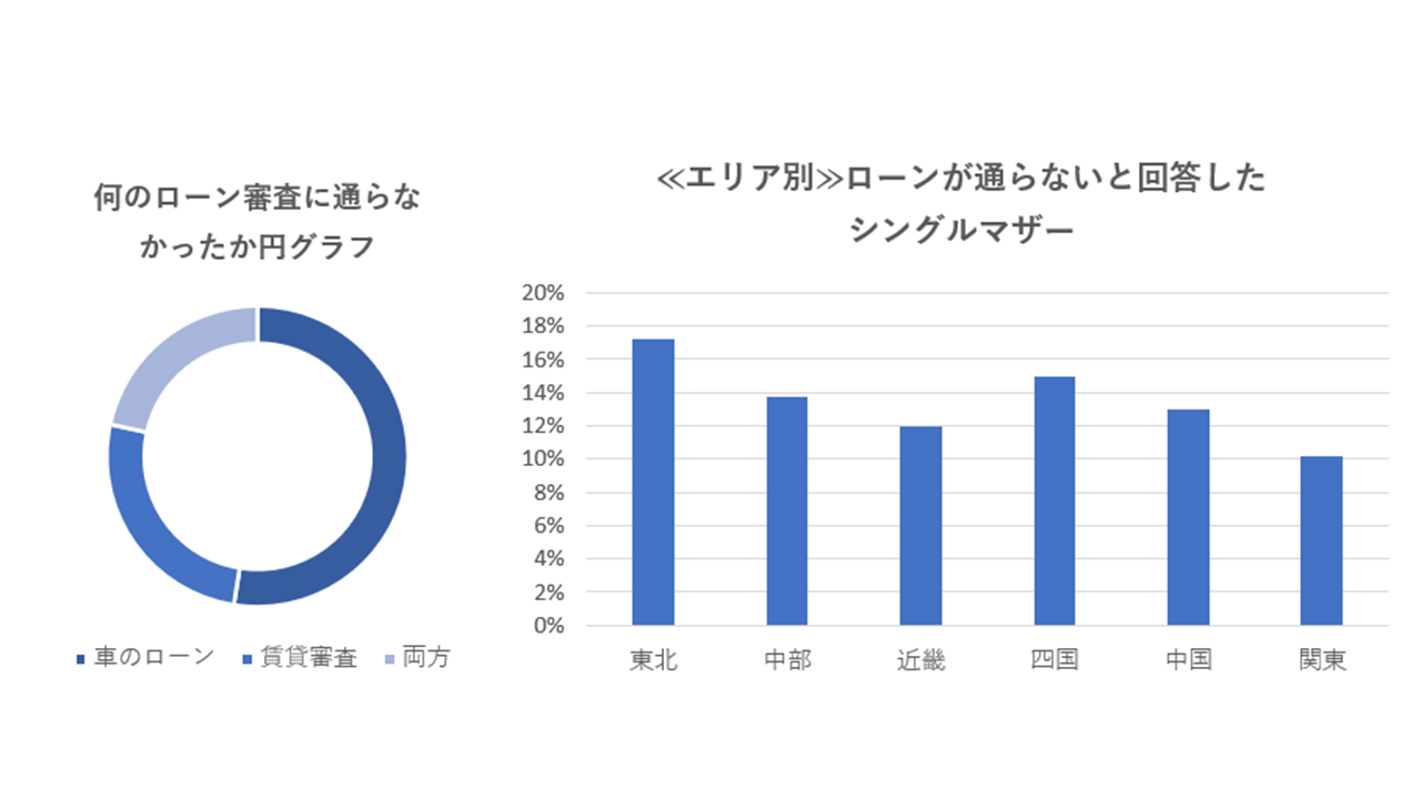 またローンが通らないと回答したシングルマザーの住んでいる都道府県別結果は、1位「東北地域」、2位「中部地域」、3位「中国地域」となりました。