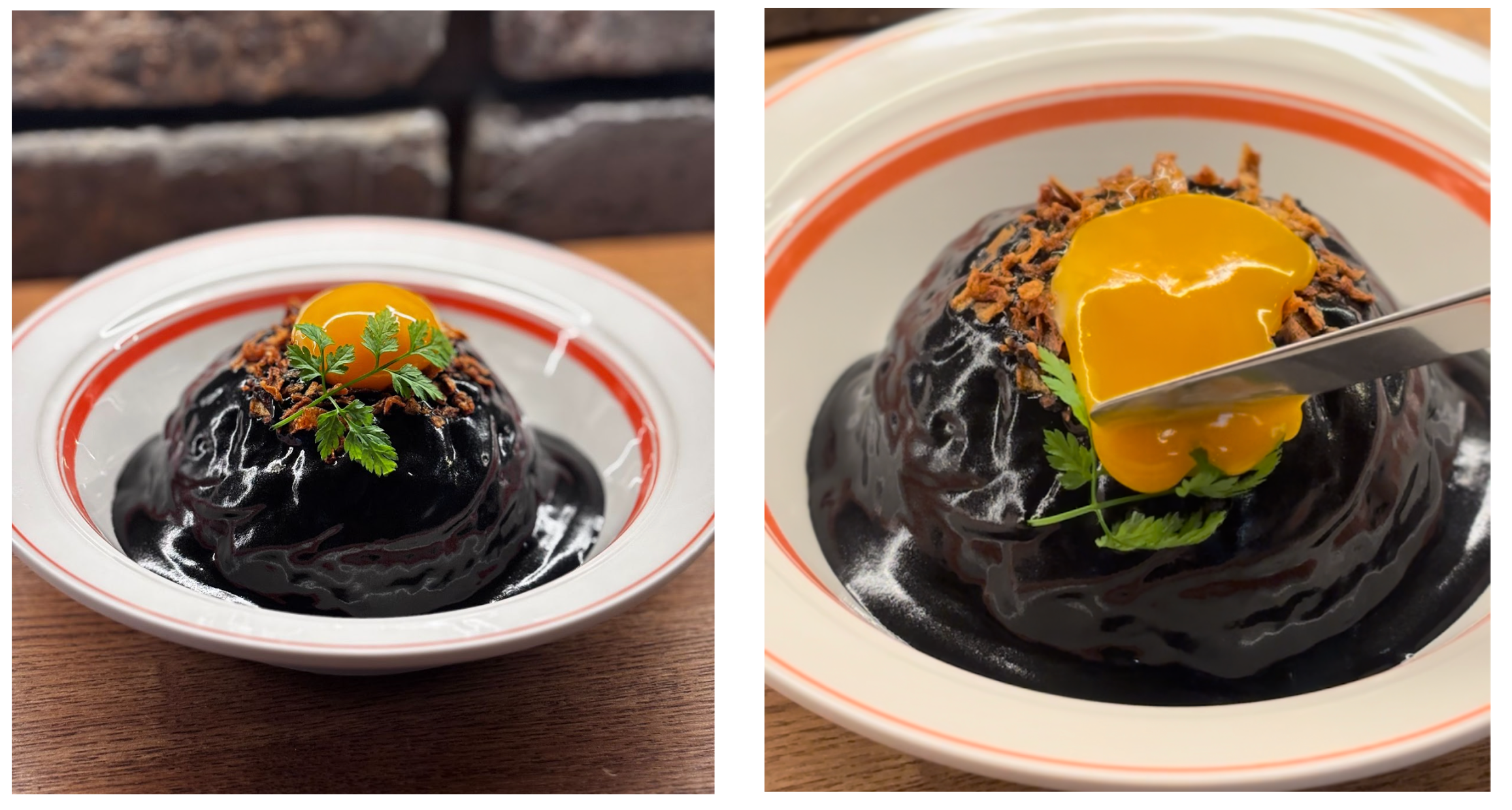 当店の人気商品であるタコライスをハロウィンシーズンに合わせてアレンジ。チーズソースにイカスミを混ぜ、黒く光輝くタコライスに仕上げました。沖縄ではスミ汁などの料理にイカスミがよく使われています。イカスミを使っている分、よりコクが増して濃厚な味わいに。ビジュアルも夜空に輝く満月をイメージしたハロウィンシーズンにぴったりの一品です。