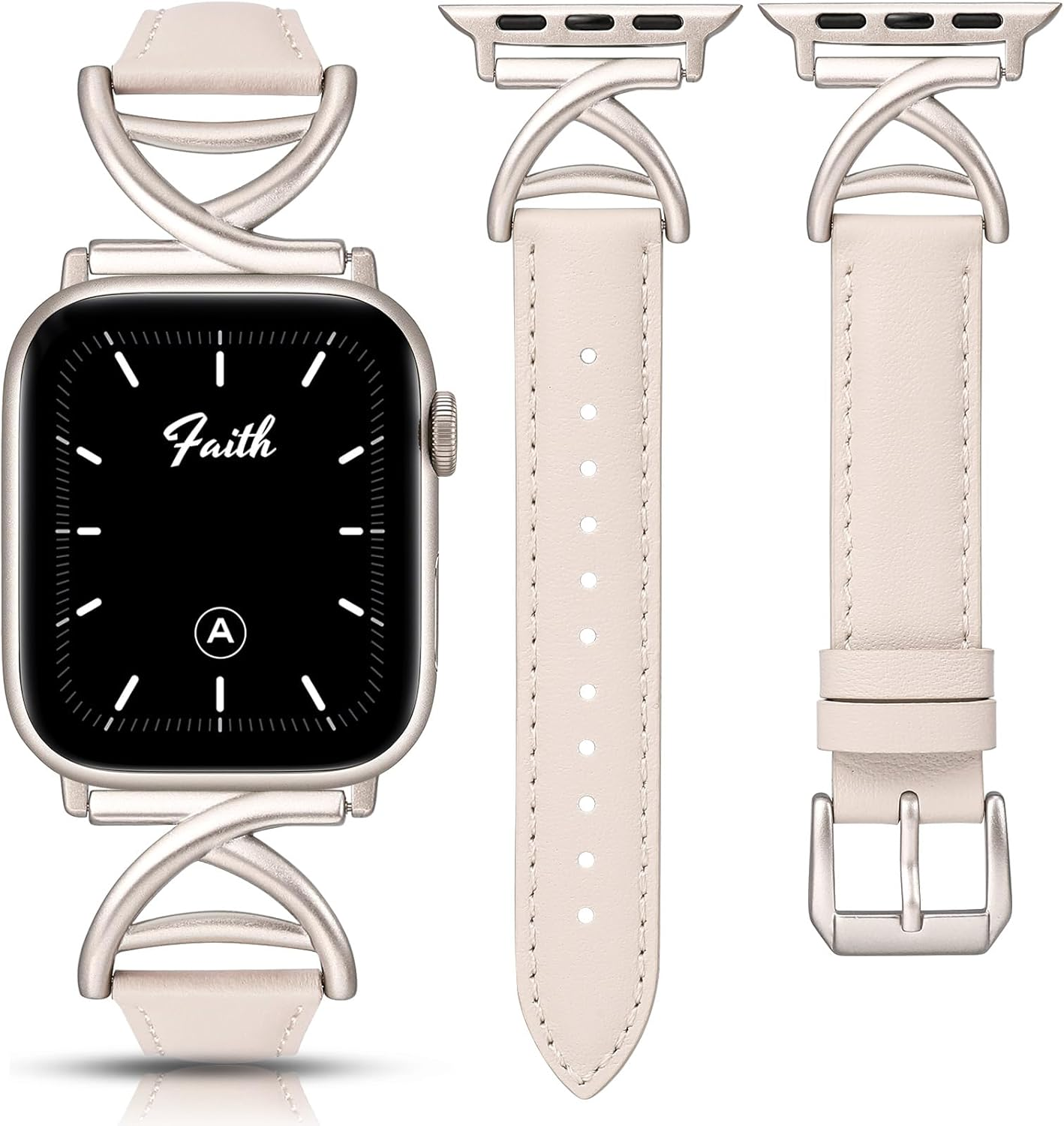 上品でクラシックな「スリムレザーバンド」や、女性に人気の「パール付きレザーストラップ」、「ヴィンテージ調レザーバンド」など、毎日のコーデに馴染むデザインが豊富。
