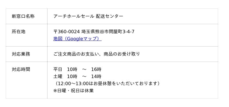 アーチホールセール(本部)事務所でのお支払い対応は、2025年10月15日をもって終了いたしました。
