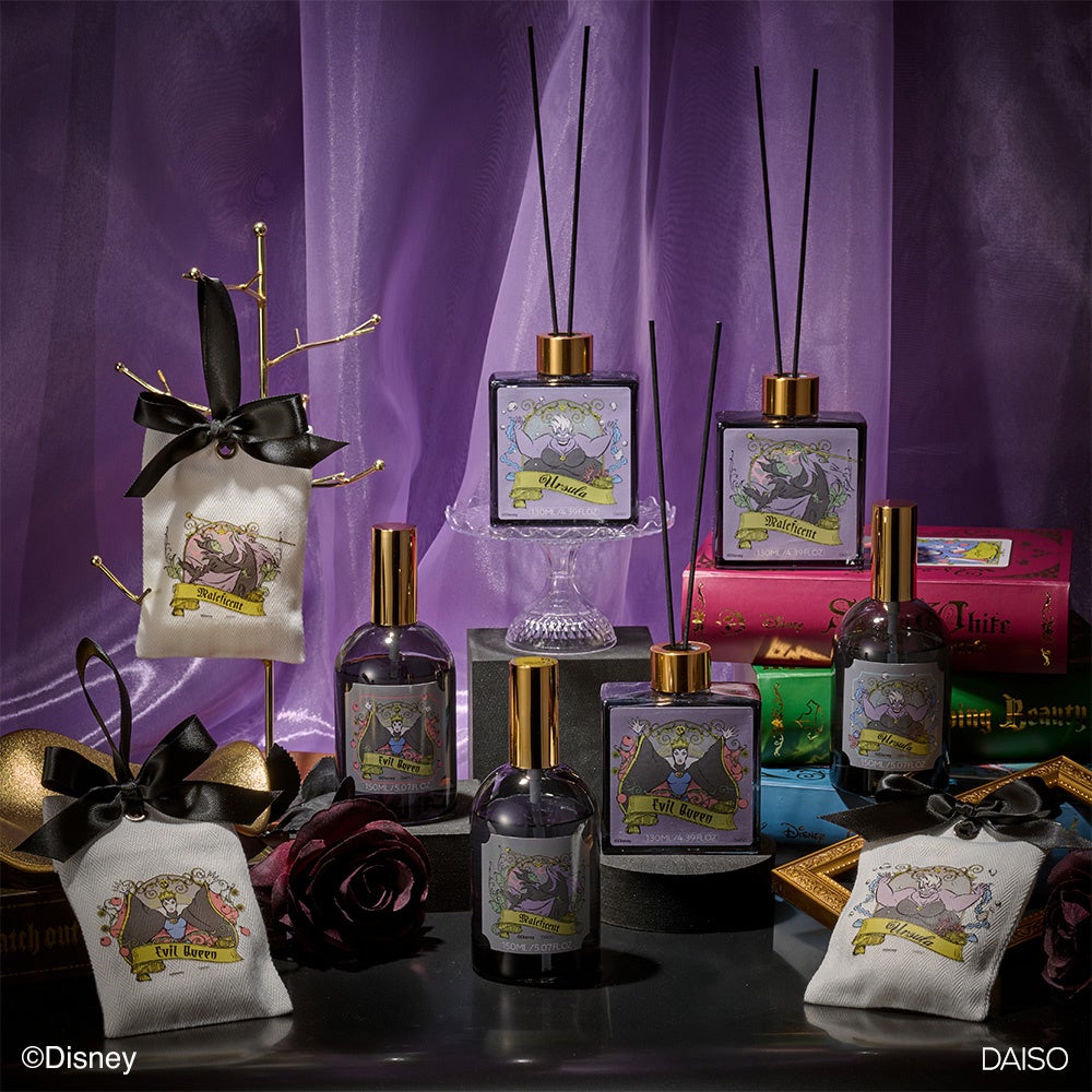 “ヴィランズ”の強さと美しさ、ミステリアスで高揚感のある世界観をオリジナルデザインで表現 アロマディフューザーやエコバッグ、化粧小物など約40種類を展開、ダイソーネットストアでも取り扱い