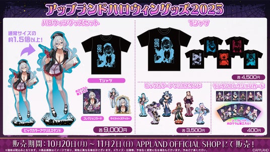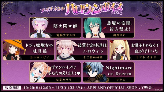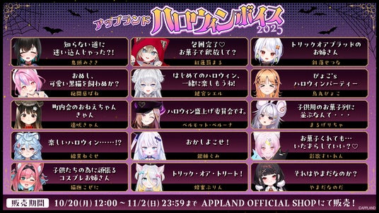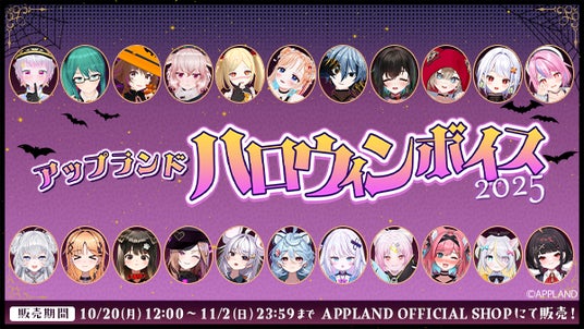 株式会社アップランド(本社:東京都世田谷区、以下「当社」)が運営する「.LIVE」・「ぶいぱい」メンバー合計6名の『アップランドハロウィングッズ2025』、および合計22名が参加する『アップランドハロウィンボイス2025』をAPPLAND OFFICIAL SHOPにて販売することをお知らせします。