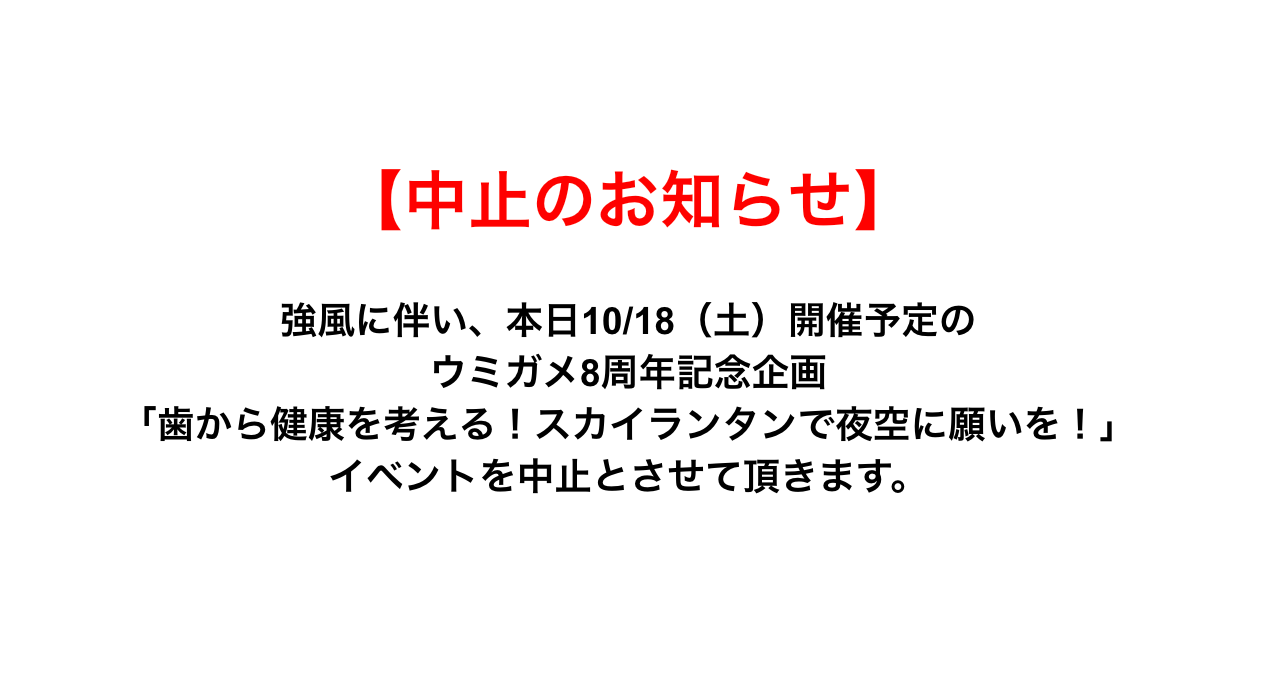 本日2025年10月18日(土)18時より、東京都芝公園にて開催を予定しておりました「歯から健康を考える!スカイランタンで夜空に願いを!」について、気象庁の予報による最大風速7mの見込みを受け、参加者および関係者の安全を最優先に、誠に残念ながら開催を中止することを決定しました。