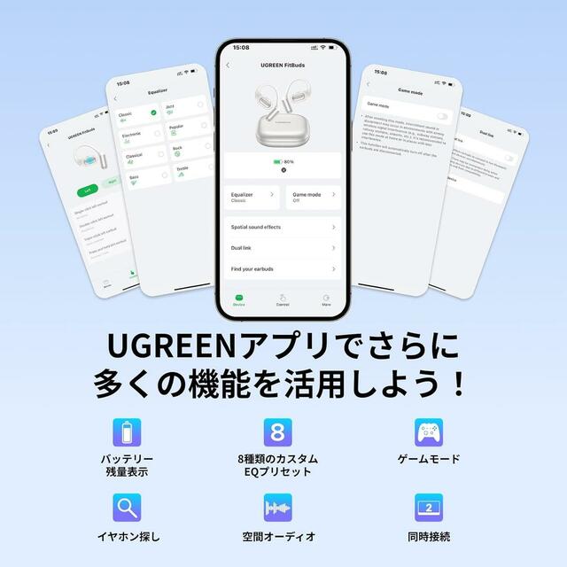 専用アプリを通じて8つのEQプリセットと2つのカスタムモードを切り替えたり、空間オーディオやイヤホンの位置確認などの機能も利用可能。高精度なタッチ操作にも対応しており、運動中の操作もスムーズです。24ヶ月の製品保証付きで、安心して長く使えるのも魅力のひとつですね。
