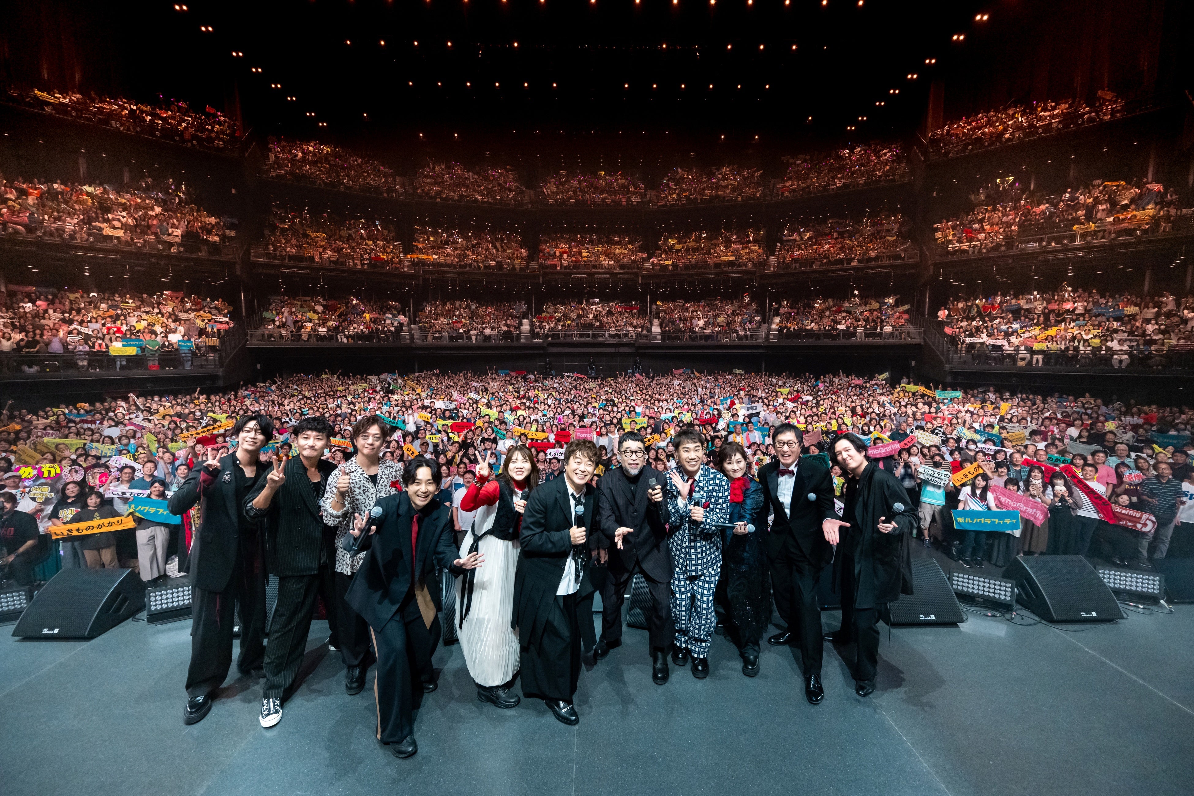 「YELL」ではこの曲のアレンジを手掛け、今回のライヴの総合演出を手掛ける、本間の師匠でもある松任谷正隆が登場し、ピアノを演奏。吉岡の歌と水野、コーラス隊の厚いコーラスが重なり、ゴスペルのような佇まいに。「ブルーバード」は客席が総立ちになり、「この曲は本間さんのアレンジではないけど(笑)、日本一この曲を演奏してくれた」(水野)と紹介した「じょいふる」は、どのアーティストのファンも関係なく全員がタオルを振り回し会場がひとつになった。