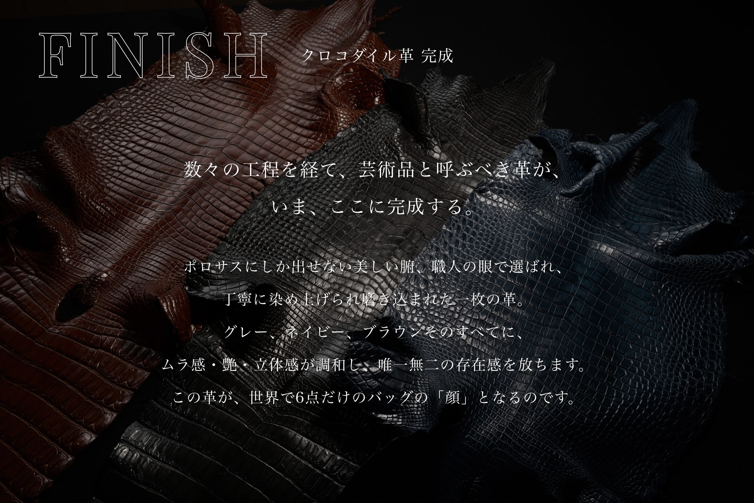 ~革1万枚から厳選し、1つの鞄にポロサスクロコダイルを3枚も使用~