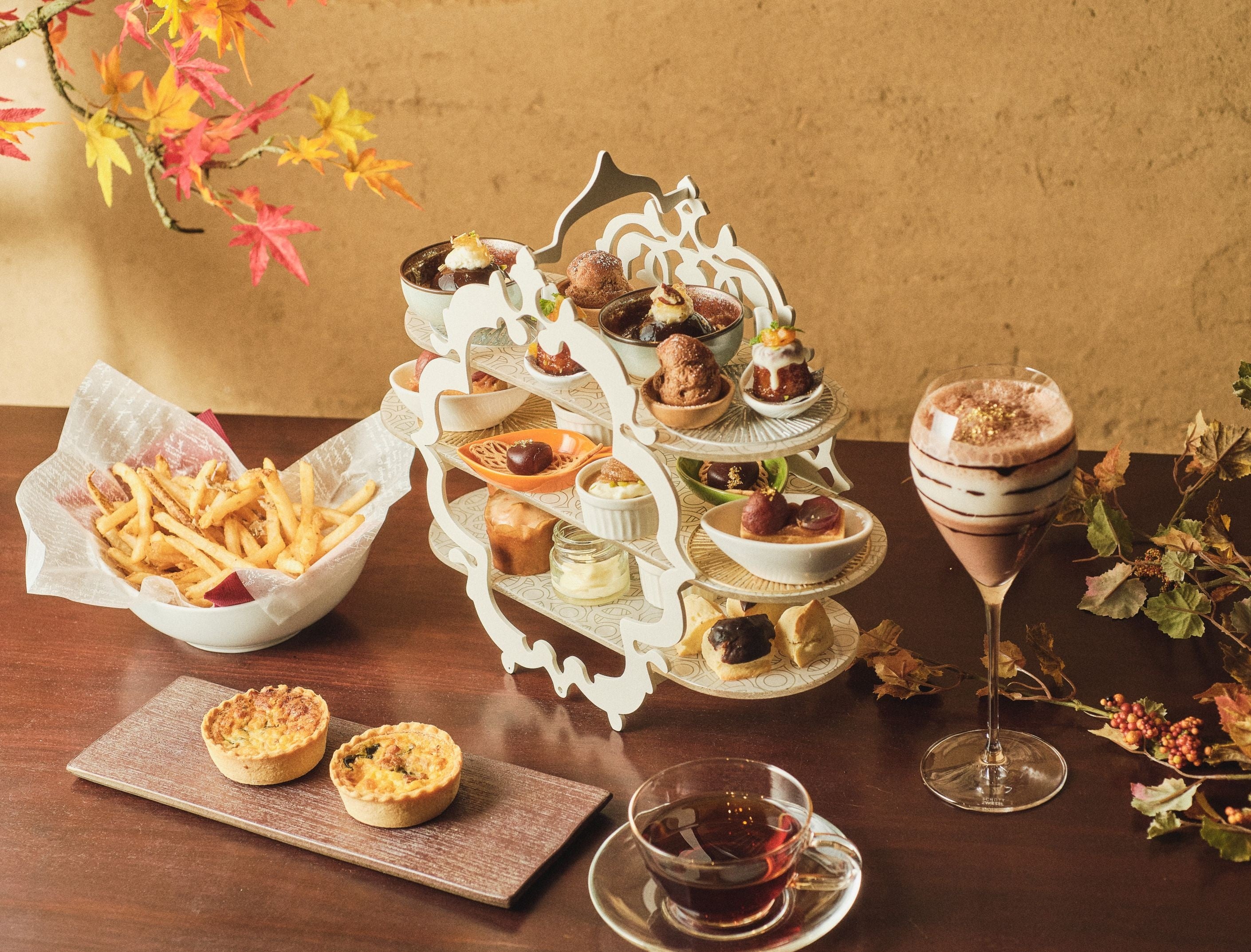 セイボリーには、お腹もご満足いただけるよう、手作りのキッシュをご用意。定番のトリュフ香るフライドポテトはスイーツの合間にアクセントとしてお楽しみいただけます。
