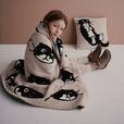 ジャガード素材のマルチカバーやねこたちのクッションは、絵本の世界に入り込んだかのような、やさしい雰囲気を演出してくれます。