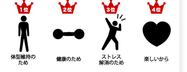 米国「1位:体型維持」「2位:健康」「3位:ストレス解消」「4位:楽しい」